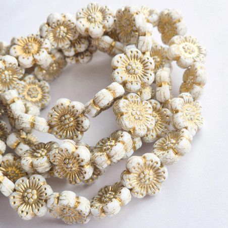 White flowers with gold finish.