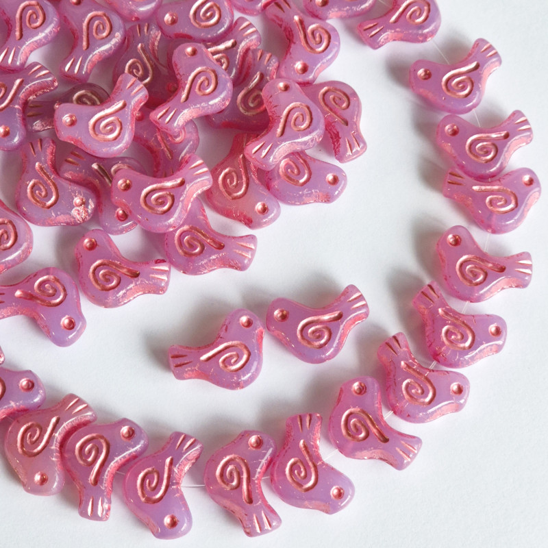 Light violet alabaster glass dove beads with pink metallic finish.