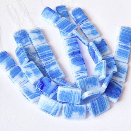 White rectangles with irregular blue stripes