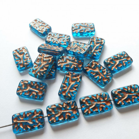Aqua rectangle with copper finish – strung