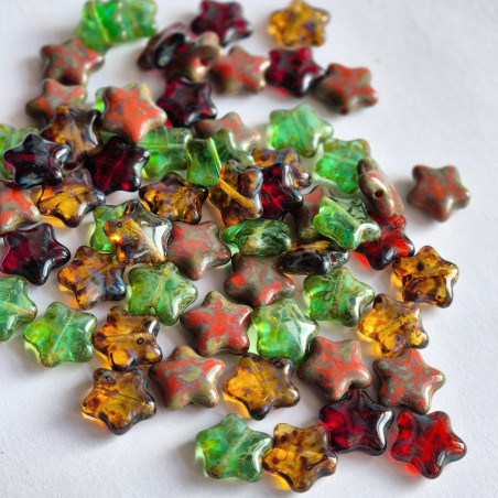 Star beads mix of red, topaz and green with travertine.