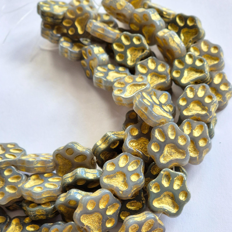 Grey alabaster paw beads with gold finish