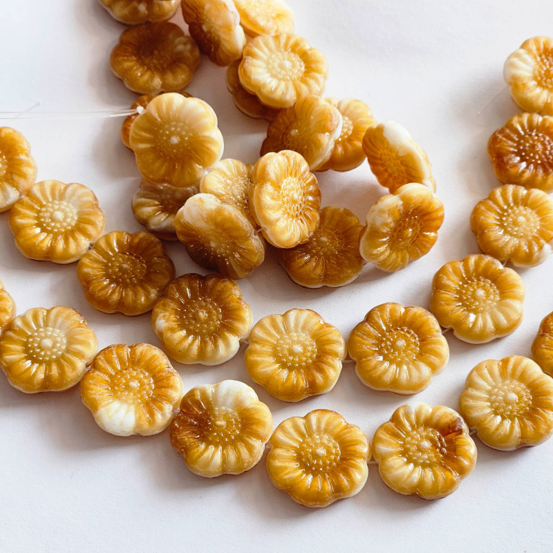 White flower with honey accents