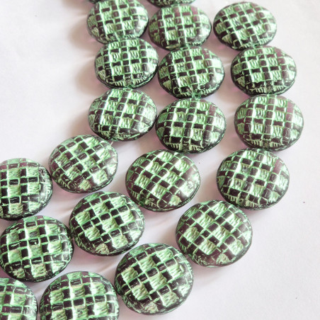 Transparent violet matte wool beads with light green metallic finish. Czech glass beads.